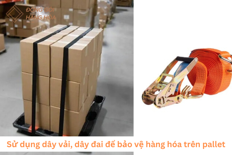 Sử dụng dây vải, dây đai để bảo vệ hàng hóa an toàn trên pallet