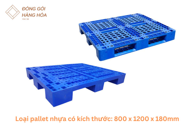 Pallet kích thước 800x1200x180mm có hình chữ nhật. Kích thước rất hài hòa để dùng khi việc. Chúng được dùng trong các vị trí để nâng các hàng hóa hay di chuyển chúng đi xa. Đây cũng là loại kích thước được sử dụng rất nhiều trên thị trường. Đối tượng mua chủ yếu là những khách hàng có mục đích dùng cho việc di chuyển, sắp xếp hàng trong kho. Giúp di chuyển và xếp hàng thật dễ dàng. Tiết kiệm được khá nhiều thời gian, công sức của bạn hơn nữa.
