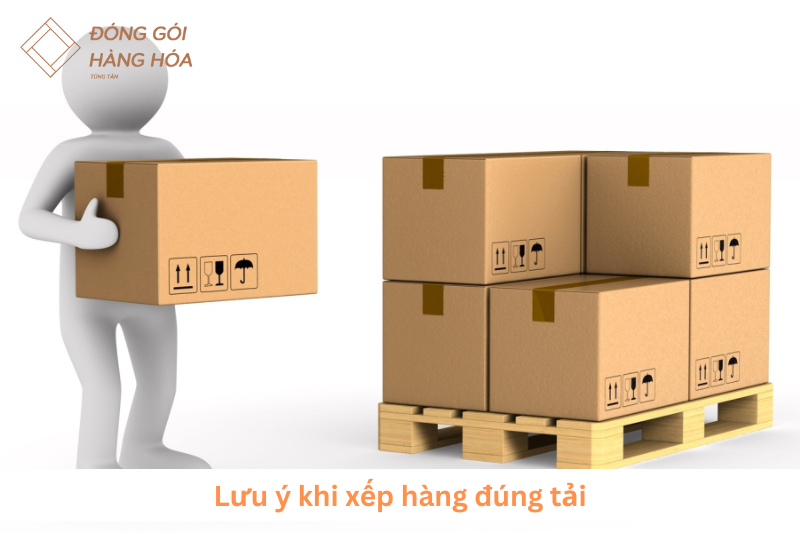 Những tải hàng có thể xếp chồng lên nhau theo phương thức đan xen. Để tạo ra sự cố định an toàn khi di chuyển tuyệt đối bạn không được xếp theo kiểu kim tự tháp.