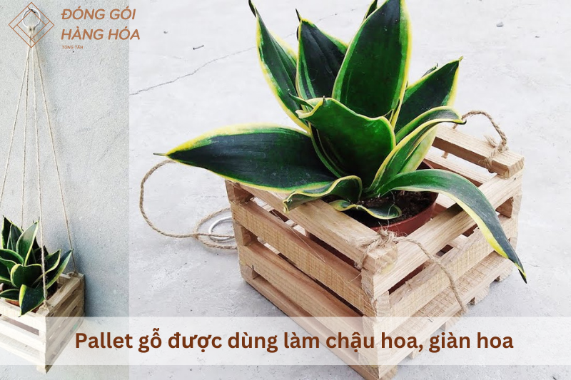 Người ta sử dụng pallet gỗ để làm thành các chậu hoa, giàn hoa với nhiều hình dạng, kích thước đa dạng không giống nhau. Khác từ kiểu hình vuông, hình chữ nhật, bệ dài liền khối hoặc hình tròn.